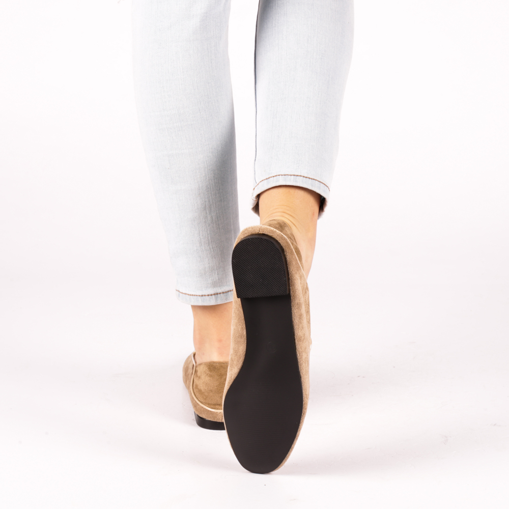 Jellemzőifordított műbőr női balerinakerek orrkényelmes, puha talpbetétcsúszásmentes talp ÖsszetételKülső: fordított bőr, műBelső: műbőrTalp: szintetikus anyag