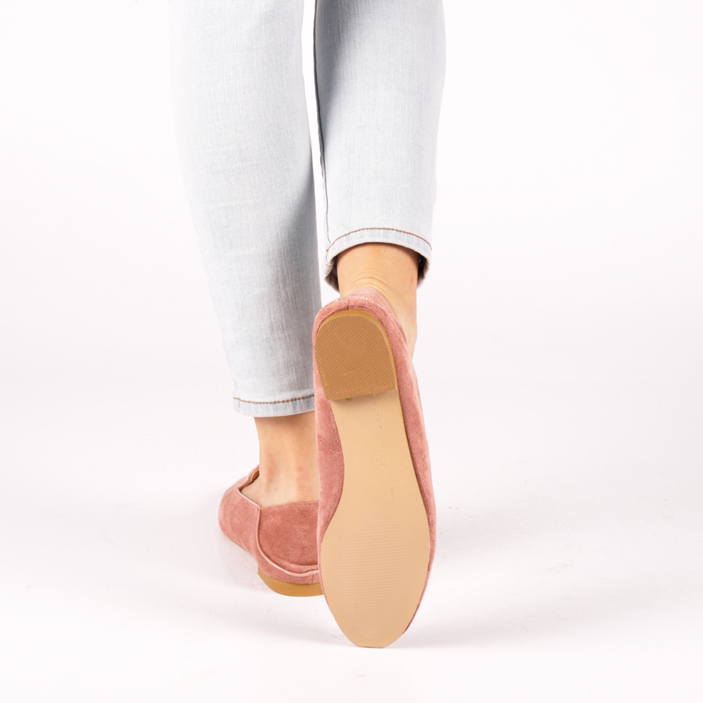 Jellemzőifordított műbőr női balerinakerek orrkényelmes, puha talpbetétcsúszásmentes talp ÖsszetételKülső: fordított bőr, műBelső: műbőrTalp: szintetikus anyag
