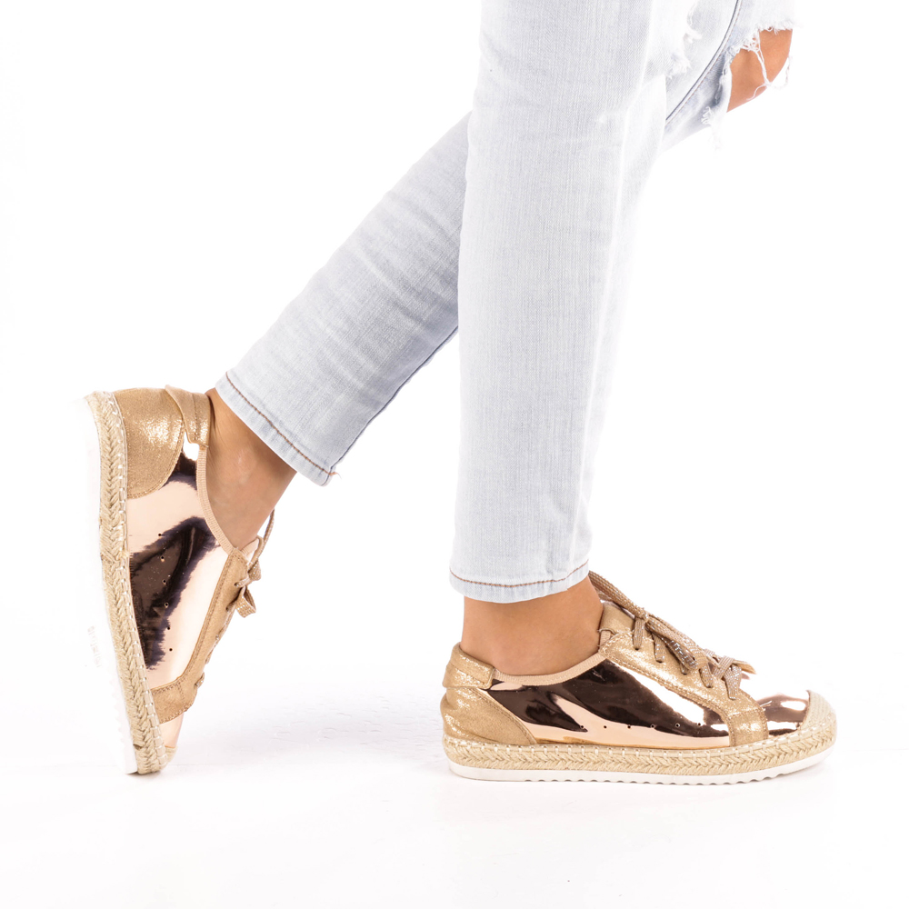 Jellemzőinői espadrilles szövetből és műbőrből, színjátszó kinézetFűzővel záródikkerek orrcsúszásmentes tapÖsszetételKülső: szövetsi műbőrBelső: szövet Talp: szintetikus anyag
