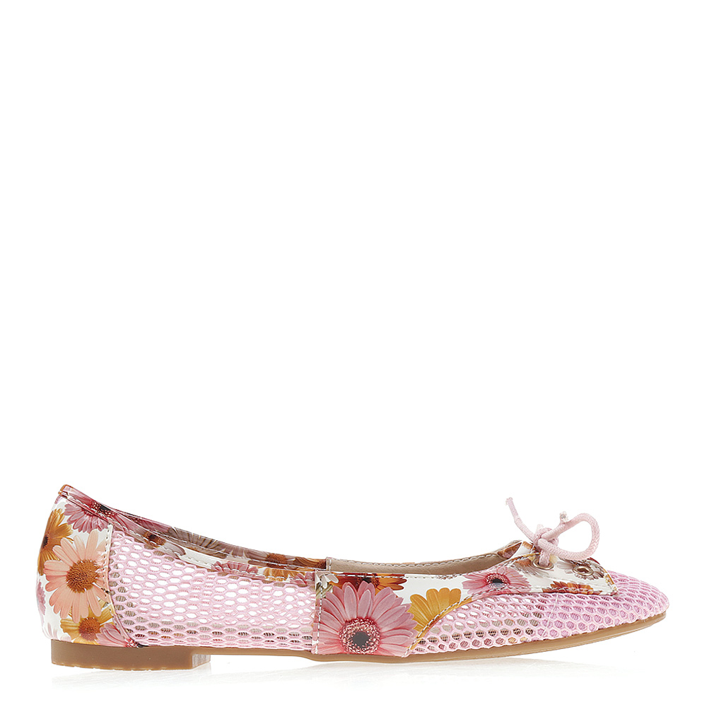 Jellemzőktextil női balerinaműbőr berakásokhelyenként virág mintadekoratív lyukasztásokdekoratív csokorkerekített orrcsúszásmentes talpTermékleírásKülső:textilBelső:textilTalp: szintetikus anyag