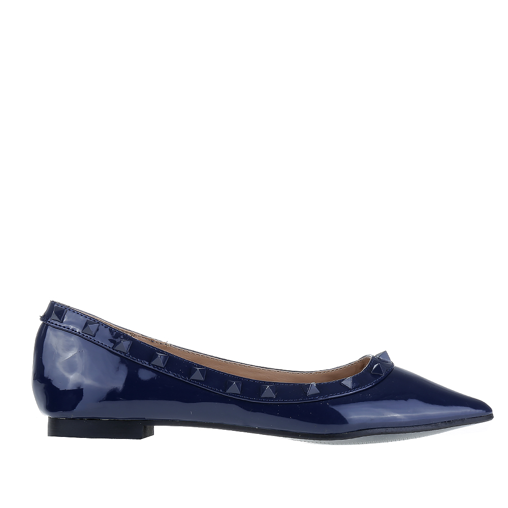 Jellemzői műbőr női balerina dekoratív fém dísz fényes kinézet élesített orrcsúszásmentes talp Összetétel Külső: műbőr Belső: műbőrTalp: szintetikus anyag