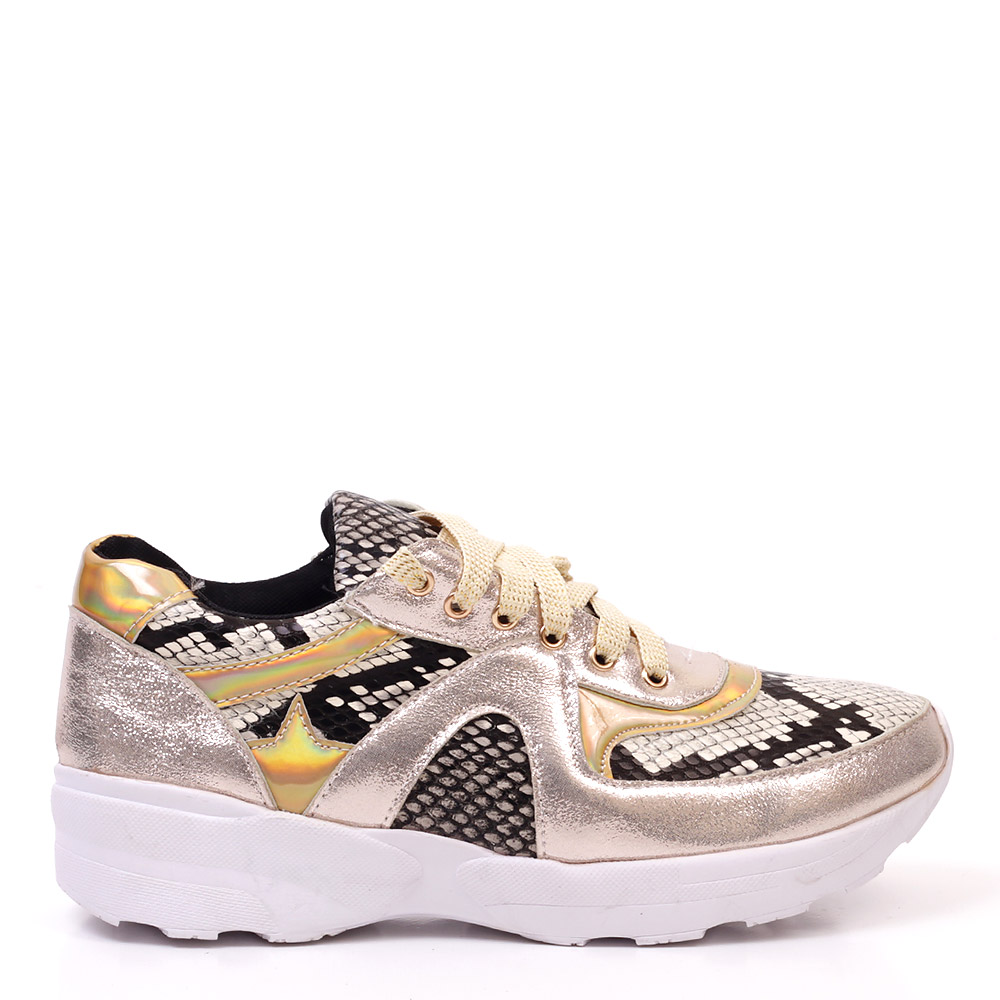 Jellemzők mübőr női sportcipő fűzős dekoratív snake skin berakás dekoratív bevarrások kerekített orr csuszásmentes talp Termékleírás Külső: mübőr Belső: textil Talp: szintetikus